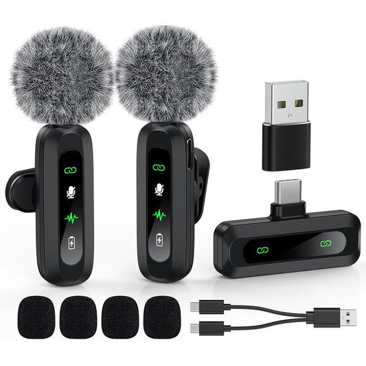 USB-C Lavalier Microphone, Clip-On Audio Mic with Clip & Indicator Light, Mini Microphones Kit, Wireless Microphones for Type-C Android Phones/Tablets/Pc Video Recording, Streaming Equipment