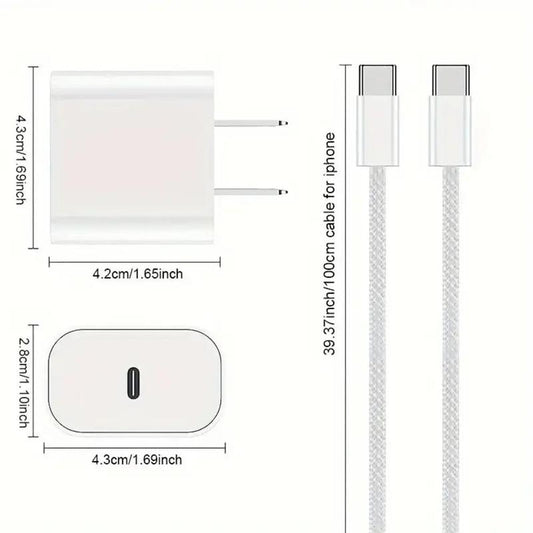 PD 20W USB C Fast Charger & Type C to C Cable Set, 2 Sets Fast Charging Head & Cable Cord, Phone & Tablet Accessories for Iphone 15 Plus/15 Pro Max, Ipad Pro 12.9 11 Inch 4 3 Generation Air Mini