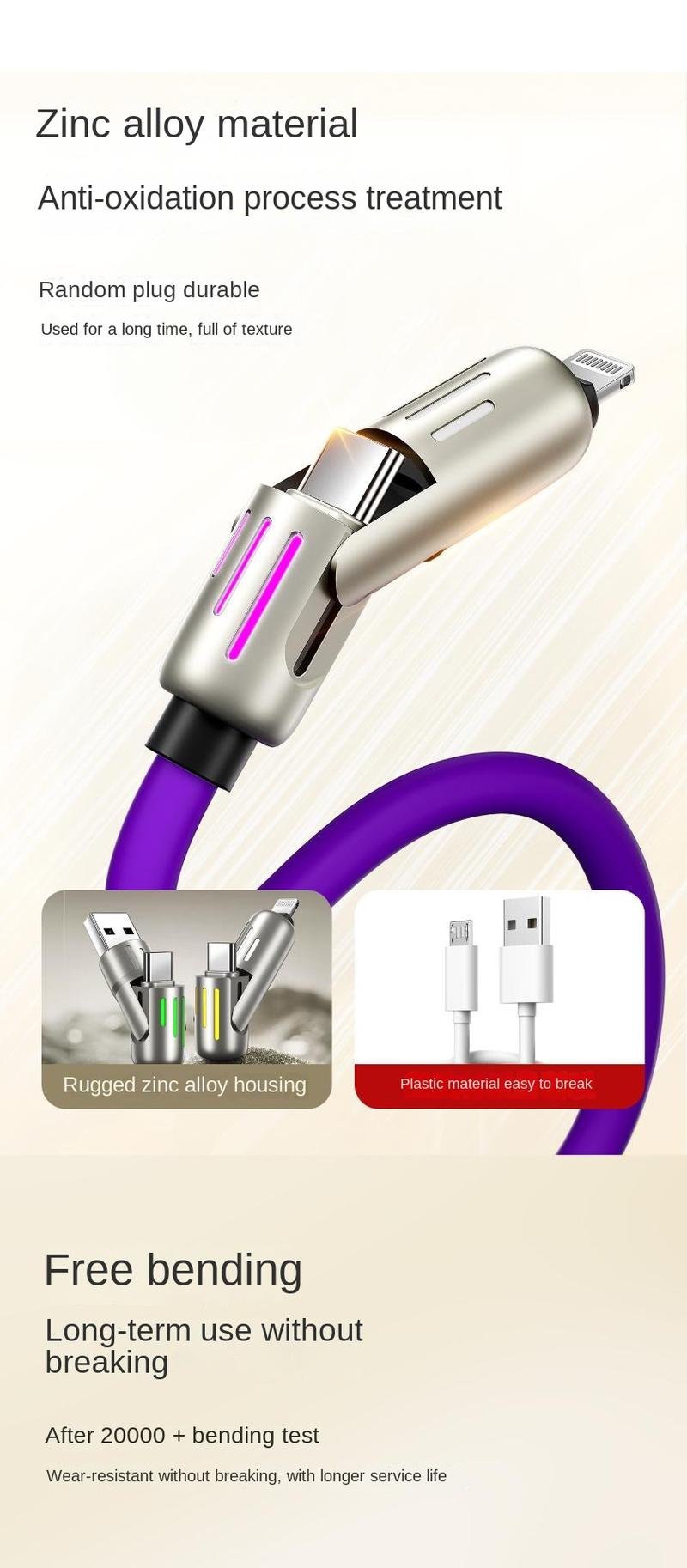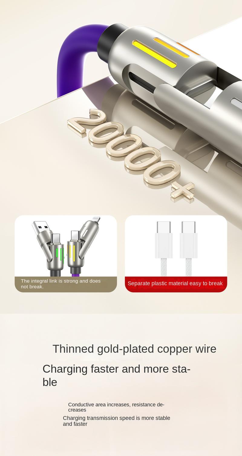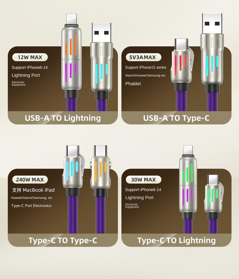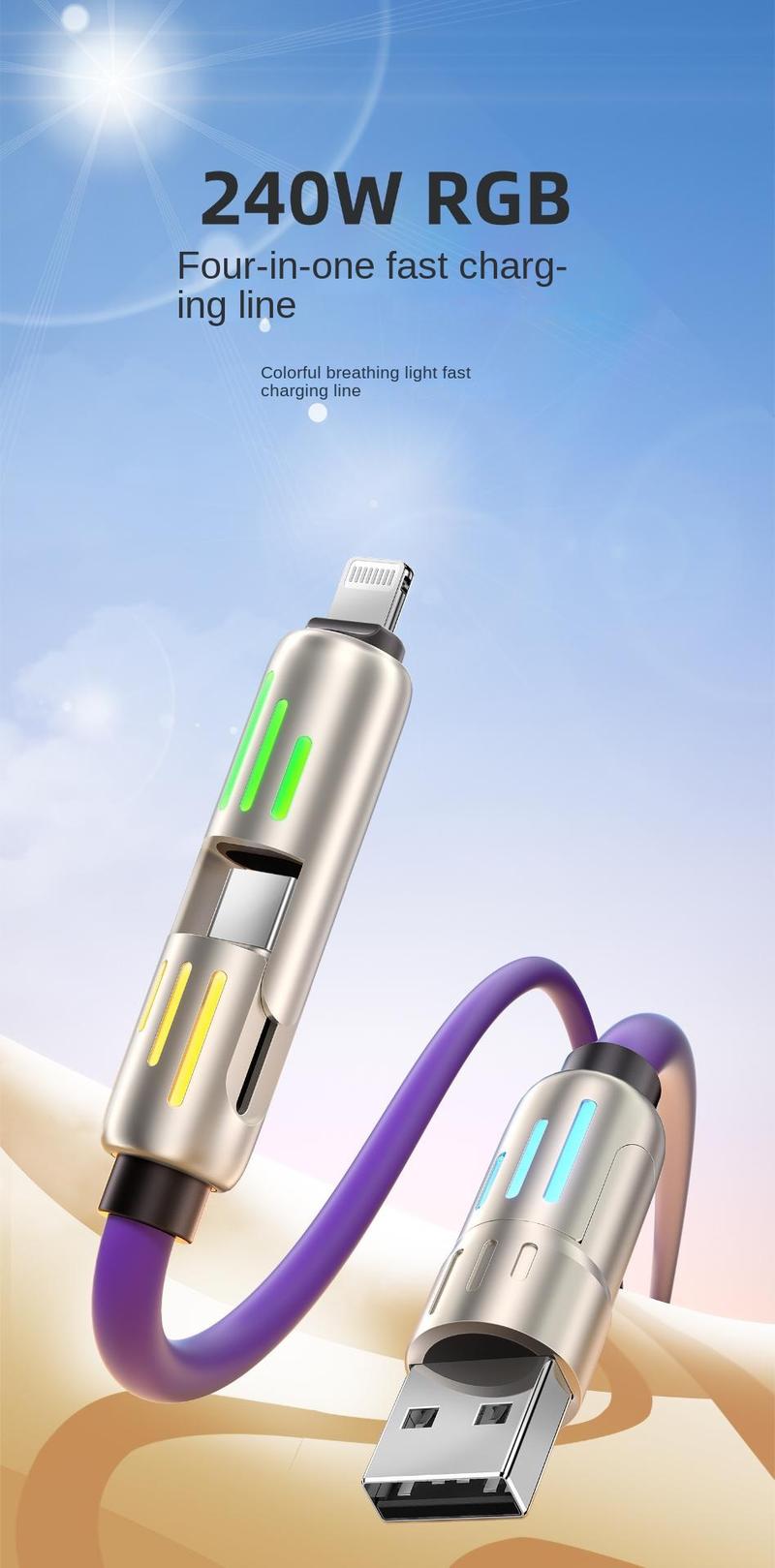 4-In-1 Multi USB Charging Cable with USB A,Type C, Lightning -MAX 240W Fast Charging & Data Sync for Iphone 16/15, Ipad Pro, Samsung & Laptops Smartphone Cellphone