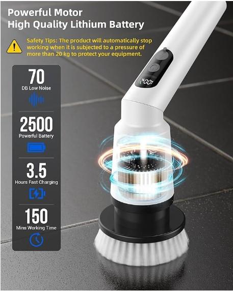 - 【One Charge, Whole House Clean】- With the Kimeetol Shower Cleaning brush, you can clean your entire house on a single charge. It's equipped with an advanced 2500 mAh lithium battery that can keep going for up to 2-3 hours after a quick charge. Plus, the digital LED display on the machine lets you keep track of the remaining battery.