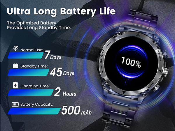 - [Ultra-Long Battery Life, Waterproof and Sweatproof] FOSMET LGW6 smartwatch optimizes Bluetooth chip, screen, etc., greatly reducing power consumption. Adopts 500mAh large-capacity battery to reduce charging frequency. Fully charged for continuous use for 5-7 days (AOD: 3 Days/Power Saving Mode: 30 Days). In addition, IP68 waterproof makes it safe for hand washing, beach use, and use in rainy days. Note: If you encounter any problems during setup and use, please feel free to contact our professional customer support.