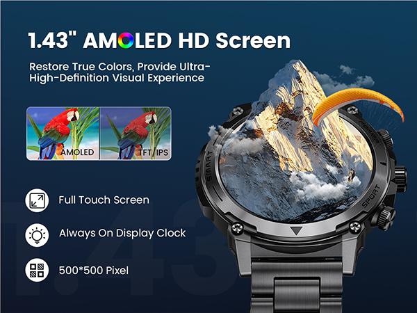 - [AMOLED Screen & Customized Watch Dial] - LGW6 uses a 1.43" AMOLED high-quality screen. It has a wider color gamut and restores more realistic colors. There are more than 200 watch dials in the system for you to choose from. Each watch dial can present a perfect effect and bring you a new visual experience. At the same time, the watch also supports uploading pictures and customizing your own watch dial, so that your personality can shine wherever you are. (Supported operating systems: iOS8 or higher, Android4.4 or higher)