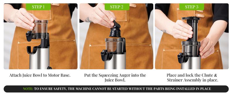[ANTI-CLOGGING DESIGN] Equipped with precision-engineered components and a specially designed auger, this cold press juicer prevents clogging by efficiently breaking down fibrous fruits and vegetables, ensuring smooth and uninterrupted juicing every time.