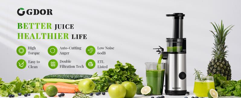 GDOR Compact Masticating Juicer with 60NM DC Motor, Cold Press Juicer Machines for High Nutrient Fruits & Vegetables, Slow Juicer with Low Noise, 20 Oz Juice Cup, Easy to Clean with Brush, Bpa-Free,Silver