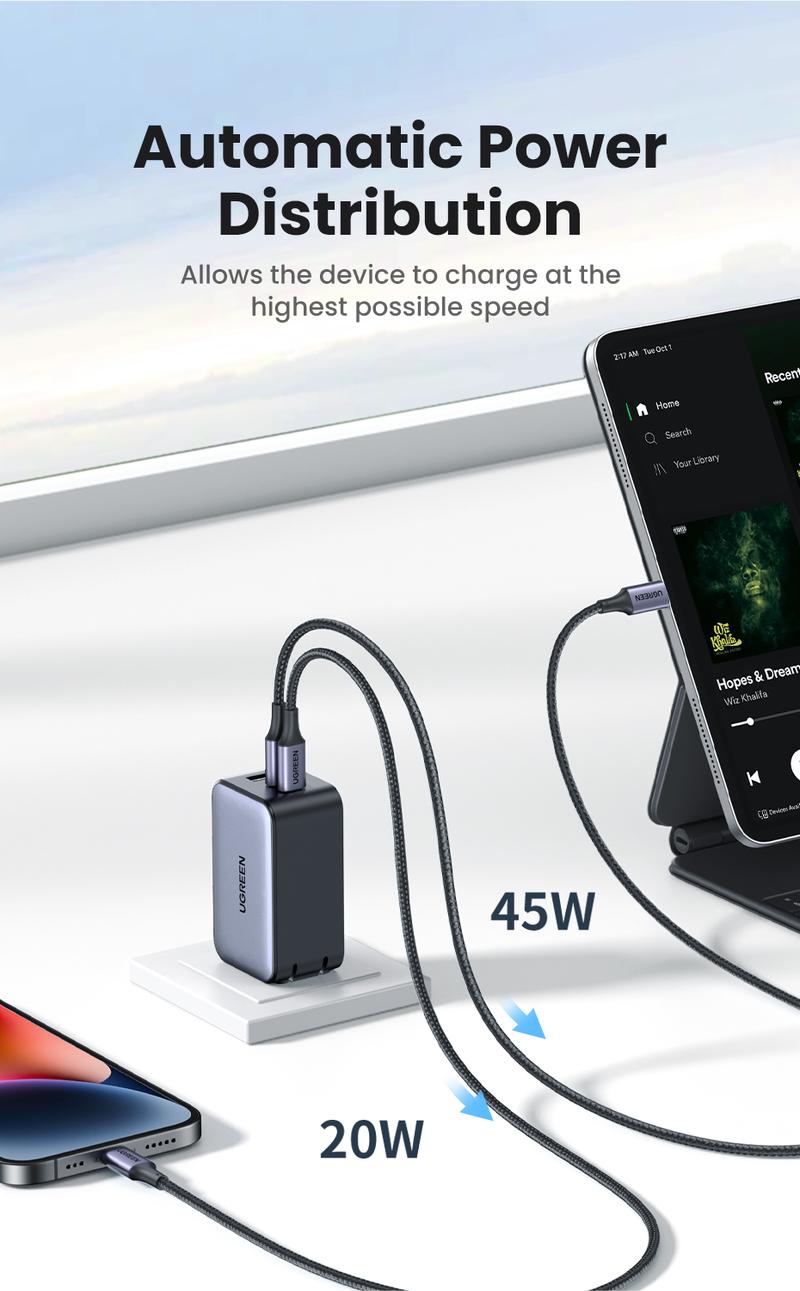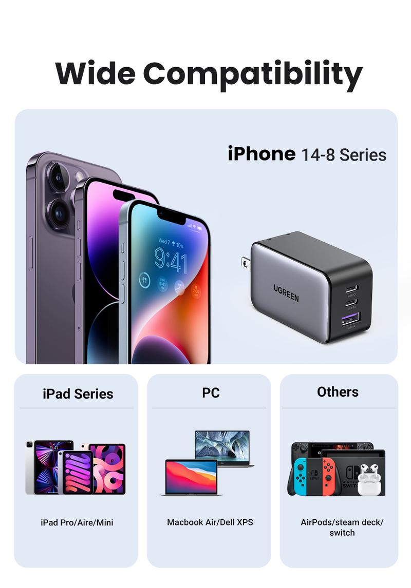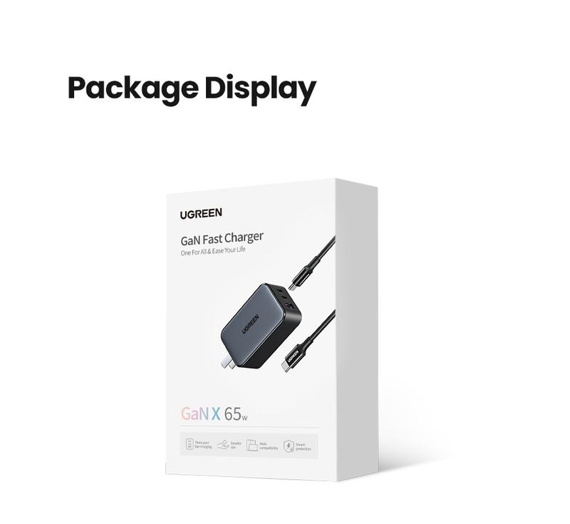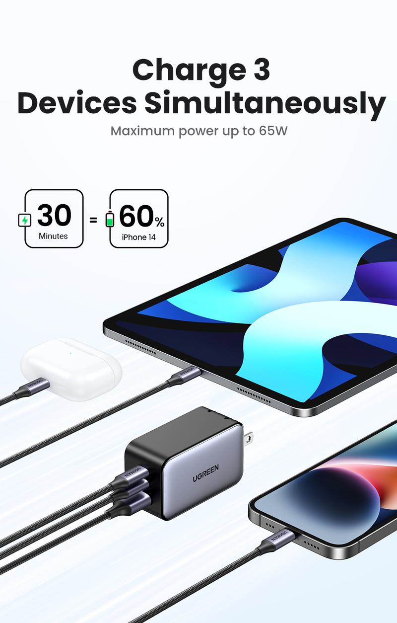 UGREEN 65W USB C Gan Charger Bundle with 3.3FT 100W USB C to USB C Cable Fast Charging, USB C to Lightning Cable Compatible with Iphone 16/15, Iphone 14, Macbook Air, Galaxy S24/S23 Foldable Plug Electronic Device--Black Friday