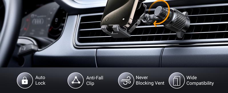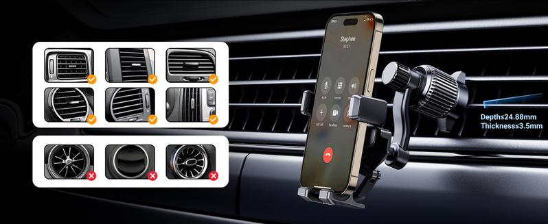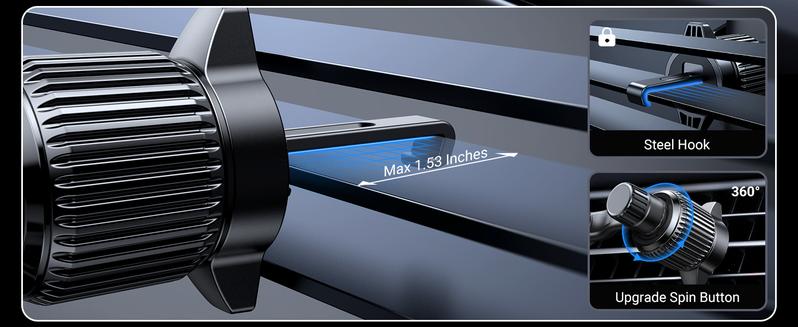 - Firm Grip with Vent Hook Clip: No worry about falling off for a safer travel driving. Note: this vent phone mount cannot support circular vents.